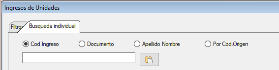 En la ventana de Unidades si esta seleccionado un Ingreso de un Donante, seleccionando busqueda individual por Documento aparece un segundo botón que directamente pega el Documento del seleccionado y de esa forma poder buscar todas las donaciones de esa persona.
