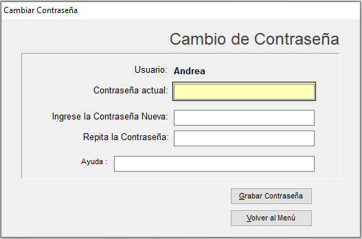 Desde el Login de Usuario cada Usuario con su contraseña correspondiente, presionando el botón de Cambiar Contraseña se accede a esta opción.
