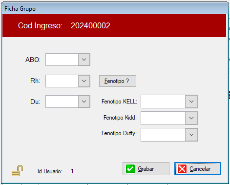 Desde el Botón Inmuno se accede a las opciones de cargas individuales de Estudios para Unidades / Predonantes / Muestras segun el tipo de Ingreso seleccionado.