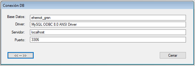 Esta ventana muestra la Conexión a la Base de datos MySQL.