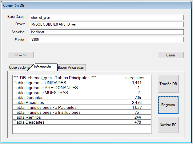 Ampliando la ventana con el botón <<--->> se accede a consultas de la base de datos como: