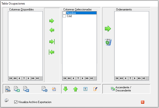 Todas las Tablas pueden ser exportadas a distintos formatos para su control con el botón <Exportar>.