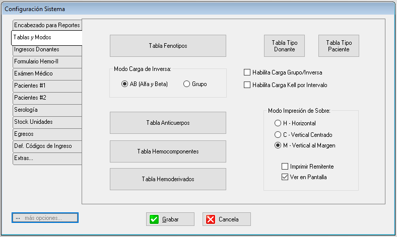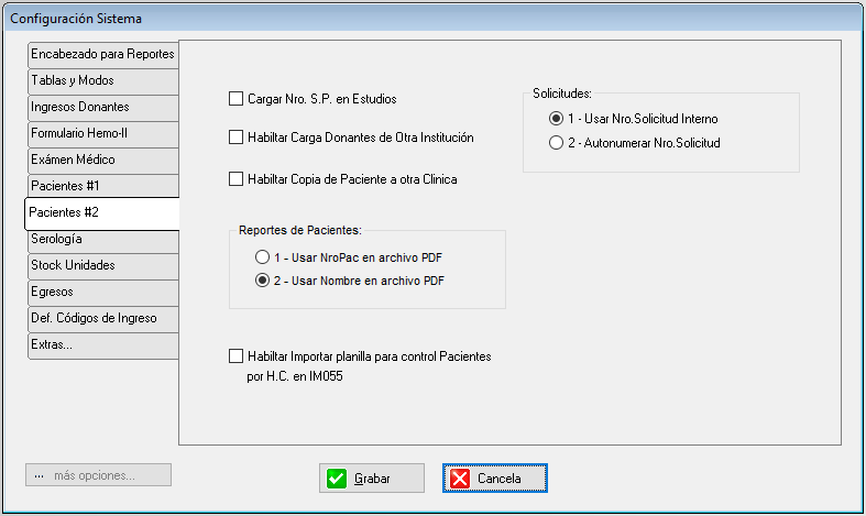 La ventana de Configuración Sistema permite definir los parámetros y modalidades de uso del sistema de acuerdo a las necesidades de cada servicio.