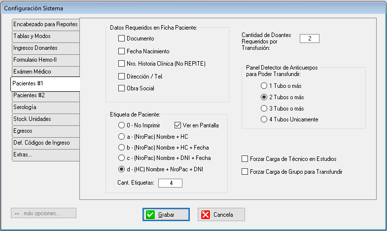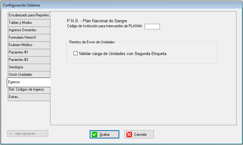 Esta última opción solo debe ser habilitada en el caso que el servicio reciba unidades de otra institución y necesite mantener el mismo Código de Ingreso de la Unidad para No reetiquetar la misma, es decir usar la misma numeración de las bolsas que la institución que le envia las Unidades.