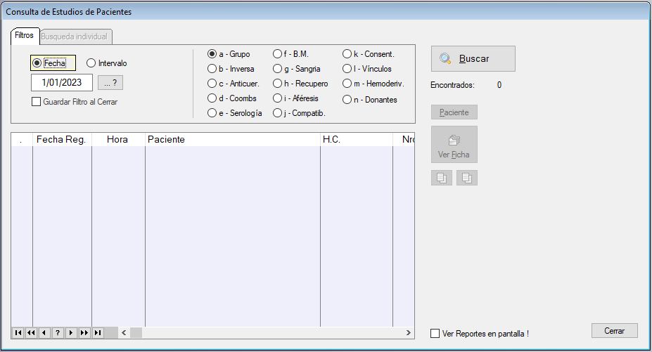 - Con el Botón de Consulta de Estudios se accede a la ventana de Consulta de Estudios de Pacientes.