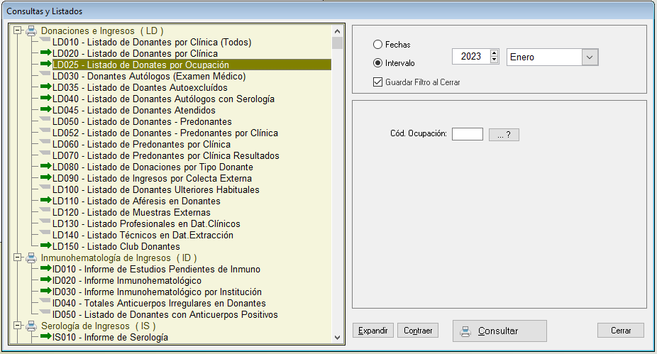 Las Consultas y Reportes estan dividas en secciones para una mejor busqueda y cada reporte tiene asignado un Identificador de 5 caracteres.