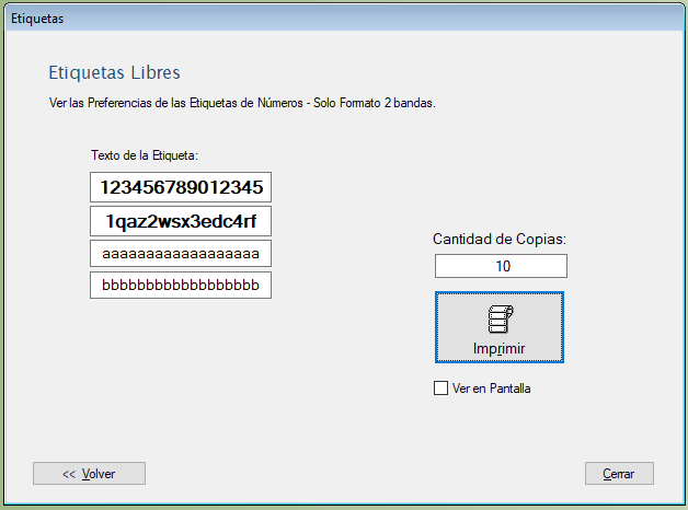 El Sistema permite generar etiquetas libres con solo texto de la siguiente forma: