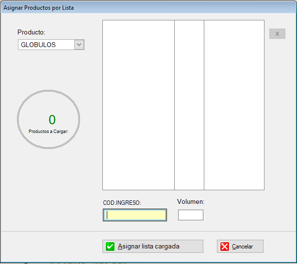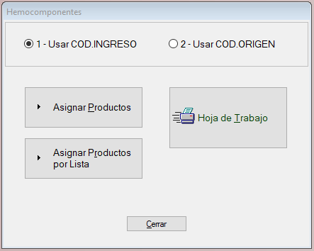 Desde esta ventana se pueden cargar los Hemocomponentes de las Unidades de forma diferente a la carga que se hace renglón por renglón en la ventana de Ingresos.