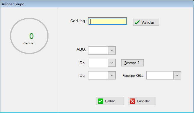Esta la posibilidad de cargar el Grupo y Rh con Lector de Código de Barras usando las Etiquetas Nuevas del sistema.