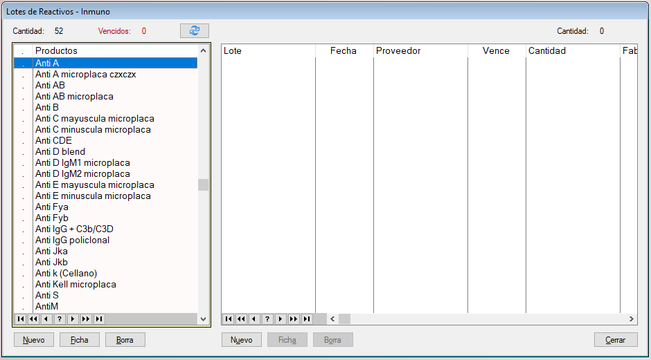 En esta opcion se pueden cargan los Lotes de Reactivos y tener un control de los mismos.