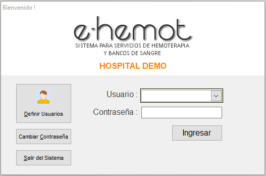 El acceso al Sistema se hace mediante una ventana de Login donde se debe identificar el Usuario y Contraseña.