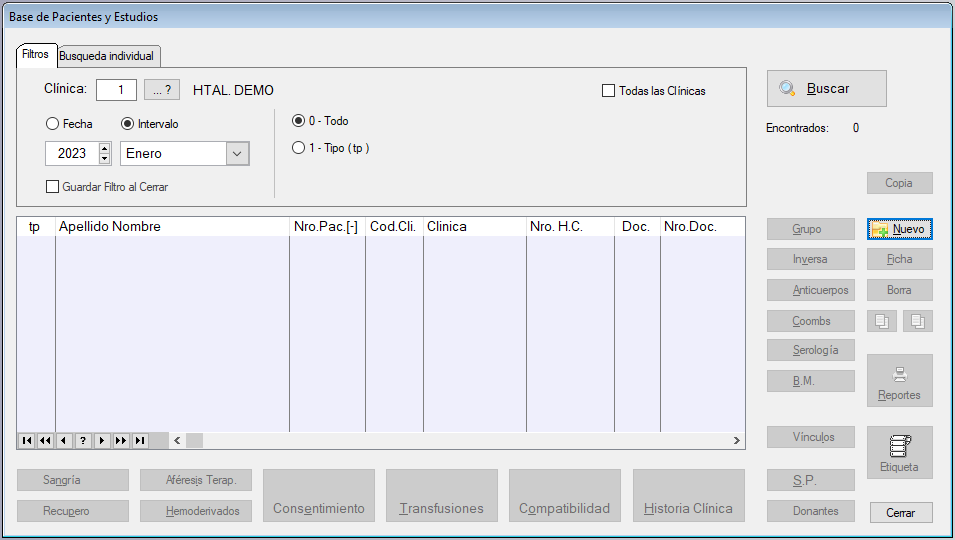 - Con el Botón de Pacientes se accede a la ventana de Base de Pacientes y Estudios.