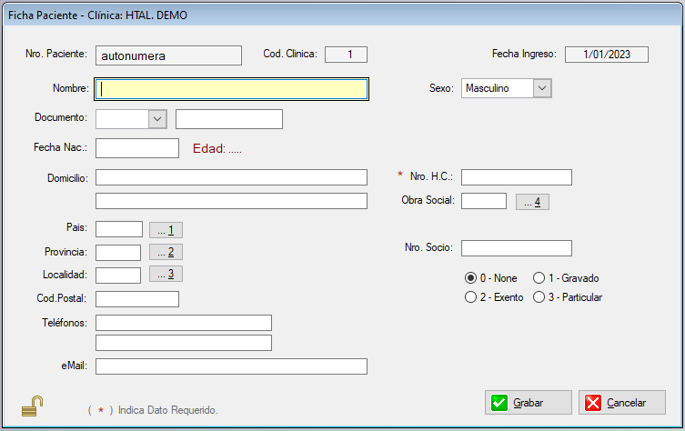 El tipo de Paciente se define en esta Ficha y tiene validez hasta que otra Internacion cambie el Tipo de Paciente.