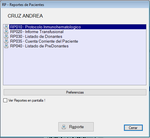 - Botón Reportes : Opciones de impresiones y listados predefinidos.