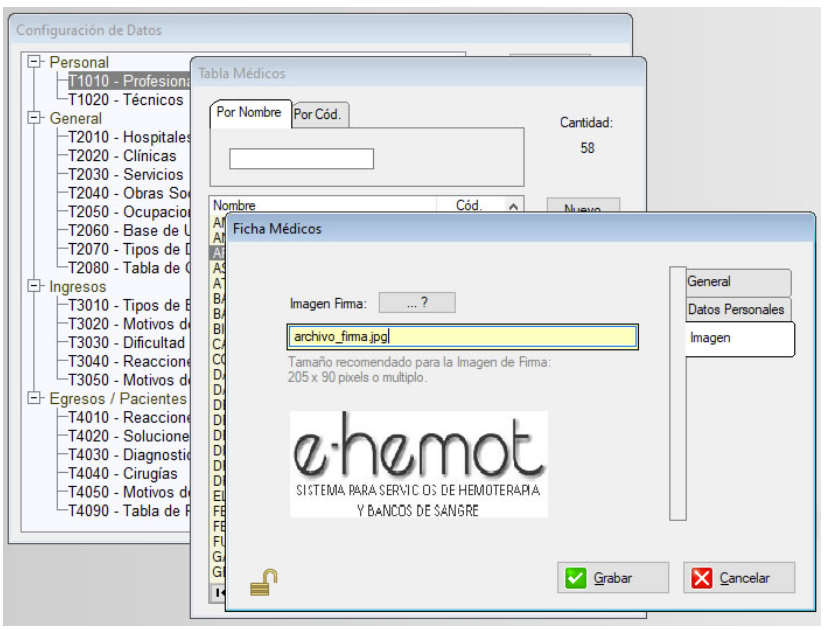 3- En en Configuración de Datos / Profesionales entrar en la ficha del Médico y asignar el archivo_firma.jpg correspondiente.