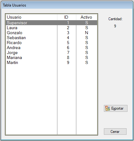 Esta Ventana muestra todos los Usuario que pueden entrar al sistema con su estado, solo a modo de consulta.