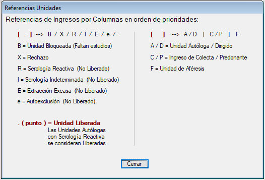 - Los Ingresos de Unidades correspondiente a las donaciones de sangre.
